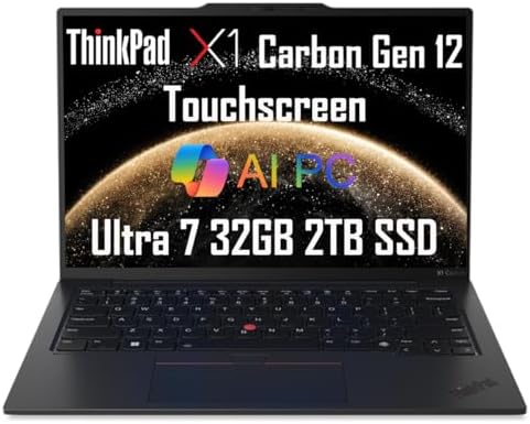 Lenovo ThinkPad X1 Carbon Gen 12 Laptop (14" FHD+ Touchscreen, Intel Core Ultra 7 155U, 32GB 6400MHz DDR5, 2TB SSD) Backlit, Fingerprint, IR Webcam, Thunderbolt 4, 3-Yr WRT, Win 11 Pro, 2025 AI PC