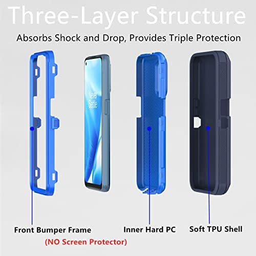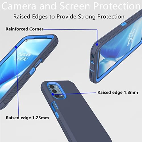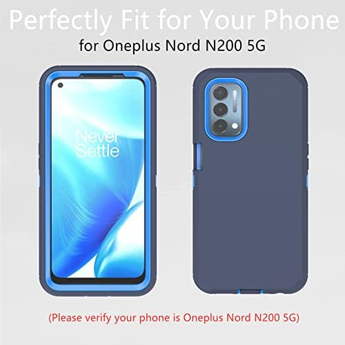 for Oneplus Nord N200 5G Case, Heavy Duty Defender Case Dustproof Shockproof Protection 3 in 1 Rugged Phone Cover for Oneplus Nord N200 5G (Blue)