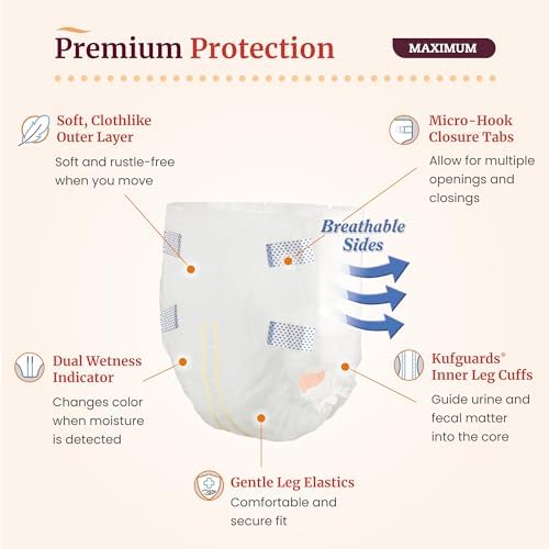 SmartCore Adult Disposable Briefs, Incontinence Control with Breathable Kufguard Technology, Fastening Tabs & Wetness Indicator, Latex-Free, Adult Large, 34oz Capacity, 96ct Case