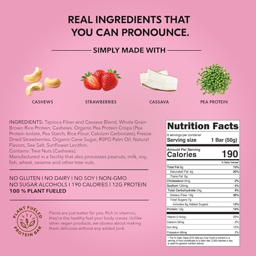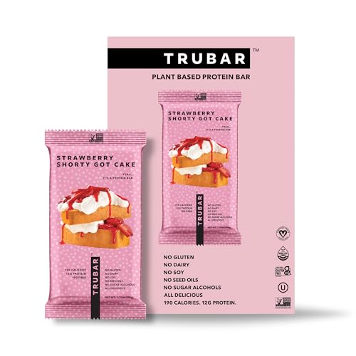 TRUBAR Vegan Protein Bar, Strawberry Shorty Got Cake, Gluten Free, Plant Based Protein, Dairy Free, Non GMO, Soy Free, No Sugar Alcohols, 12G Protein, 12G Fiber, 23G Carb, On the Go Snack Bars, 12 CT