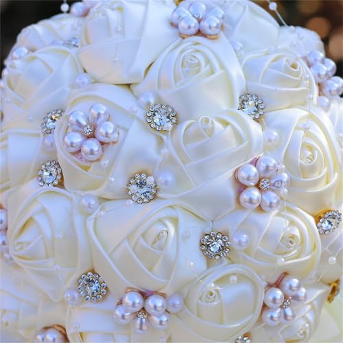 Sponsored Ad - Handmade Rhinestone Bridal Bouquet Crystal Wedding Round Tossing Bouquet Artificial Flower Bunch for Bride Bridesmaid
