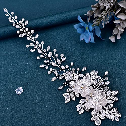 ULAPAN Bridal Hair Combs Crystal Wedding Headbands Head Pieces Rhinestones Hair Accessories for Brides Bridesmaid Womens (silver comb)