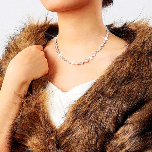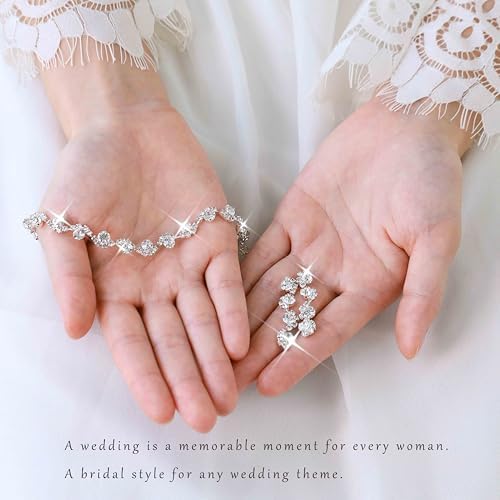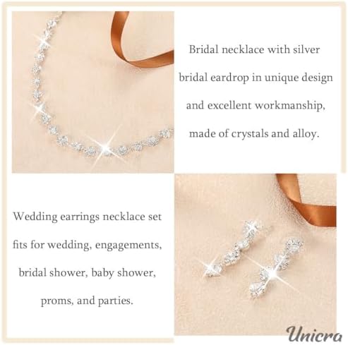 Unicra Bride Silver Necklace Earrings Set Crystal Bridal Wedding Jewelry Set Rhinestone Choker Necklace for Women and Brides