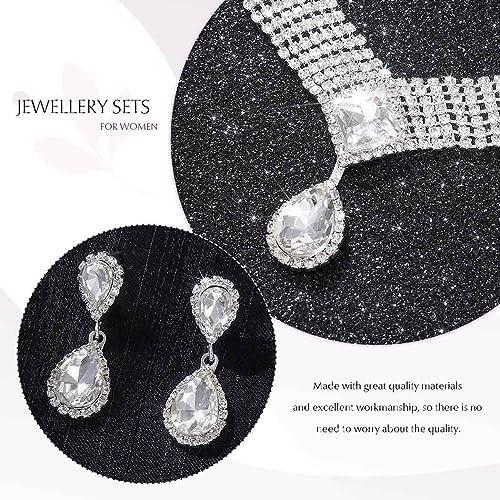Unicra Crystal Bridal Wedding Jewelry Set Silver Teardrop Necklace Earrings Bracelet Sets Rhinestone Prom Jewelry Accessories for Women and Brides
