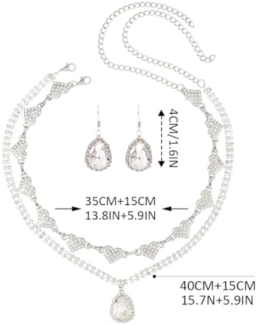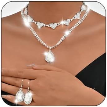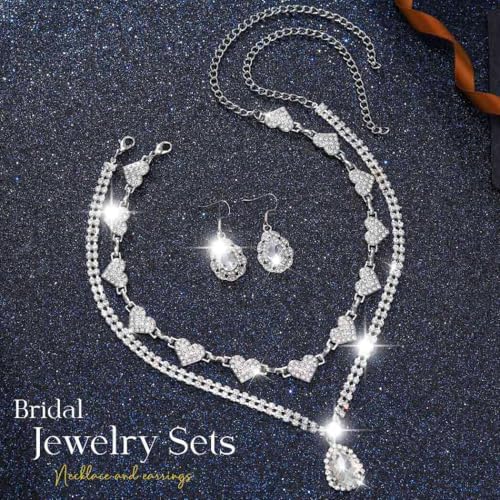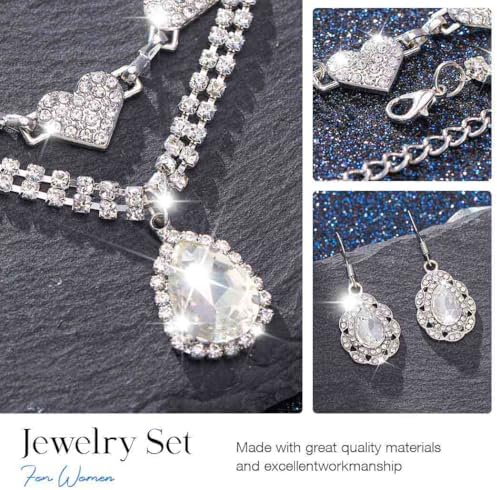 Unicra Silver Bridal Wedding Jewelry Set Sparkly Rhinestone Necklace Earrings Sets Heart Crystal Formal Costume Jewelry for Women and Brides