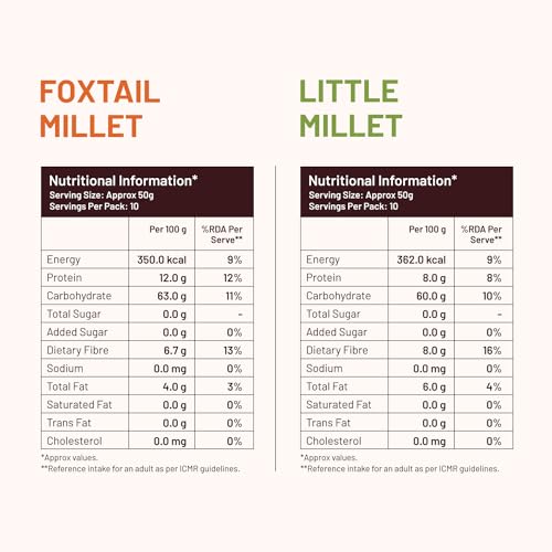 Mille Unpolished Foxtail & Little Millet Combo | Naturally Gluten-Free Ancient Grains | High Protein & Fiber | Rice Alternative for Healthy Meals | 15.87 Oz Each (Pack of 2)
