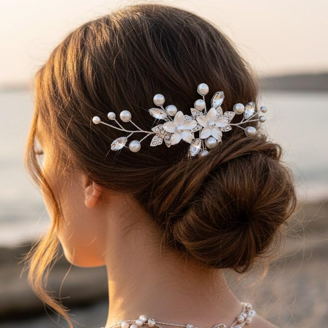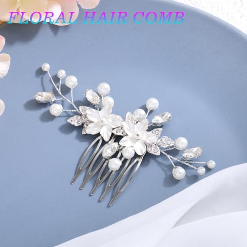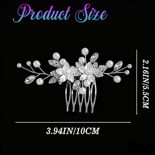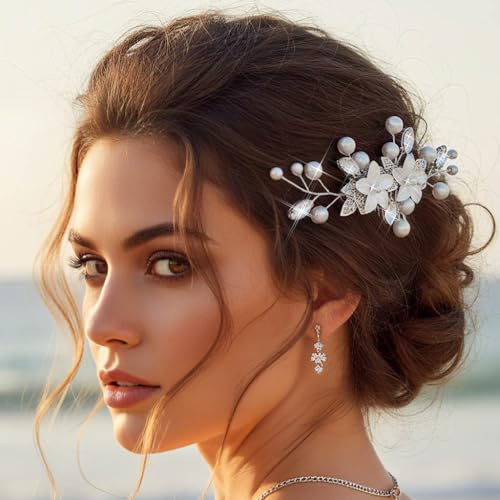 Sponsored Ad - Unsutuo Bride Wedding Hair Comb Silver Flower Bridal Hair Accessories Crystal Pearl Hair Pieces for Women and Girls