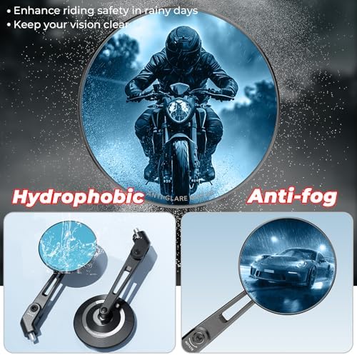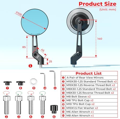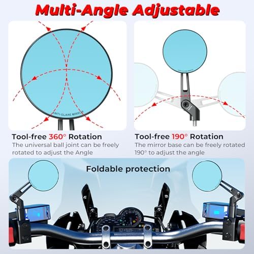Sponsored Ad - Aluminum Alloy Rainproof Foldable Motorcycle Mirrors with M8 M10 Bolts, CNC Machined Anti-Glare Blue Lenses Rear View Mirrors, Multi-Angle Adjustable for Motorcycle ATV Moped Scooter Cr