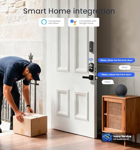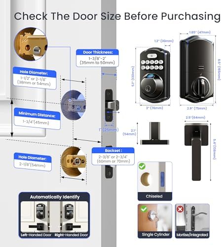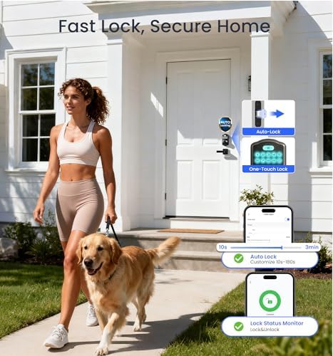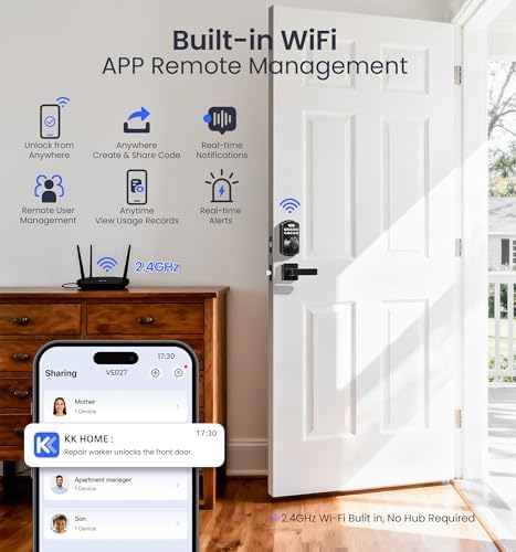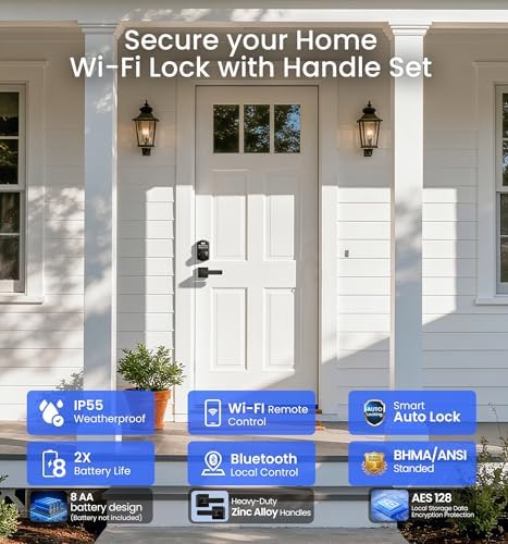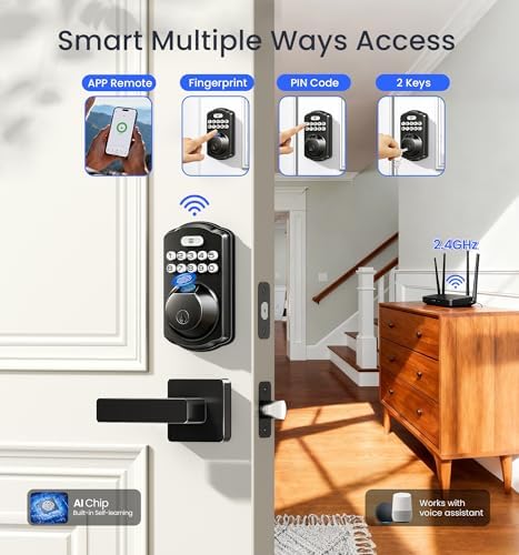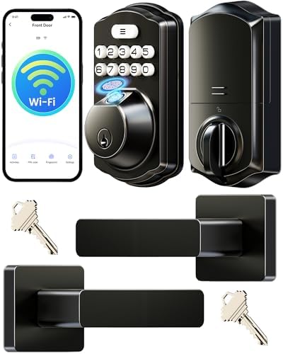Sponsored Ad - VE012W-L Built-in WiFi Fingerprint Smart Lock with Level Handle Set, App Remote Control, Digital Backlit Keypad Deadbolt, Keyless Entry for Front Door, Voice Assistant, Auto Lock, Matte