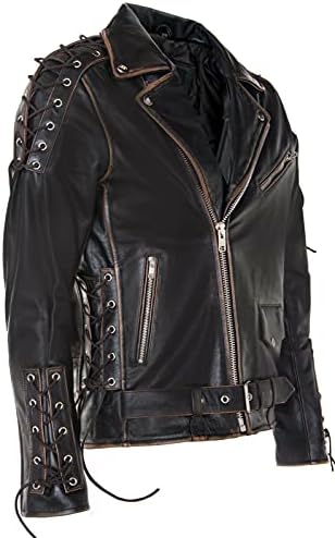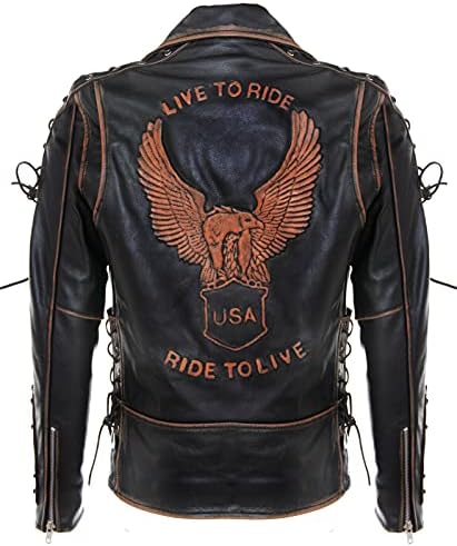 Mens Vintage Black Brando “Live to Ride” Embossed Eagle Leather Biker Motorcycle Jacket