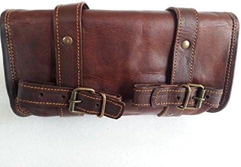 Sponsored Ad - Vintage Motorcycle Genuine Goat Leather 2 Strap Buckle Closure Tool Brown Bag Quick Release Clasp REINFORCED for handlebars,Forks, Sissy Bar - 10"