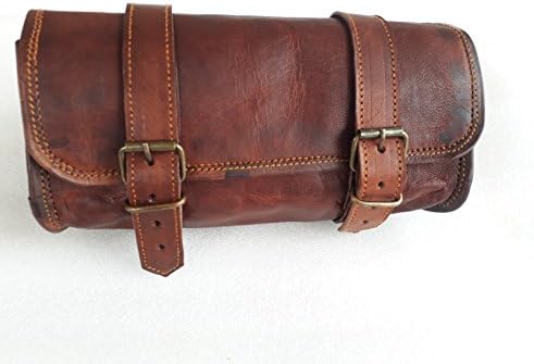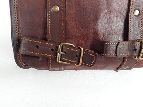 Vintage Motorcycle Genuine Goat Leather 2 Strap Buckle Closure Tool Brown Bag Quick Release Clasp REINFORCED for handlebars,Forks, Sissy Bar - 10"