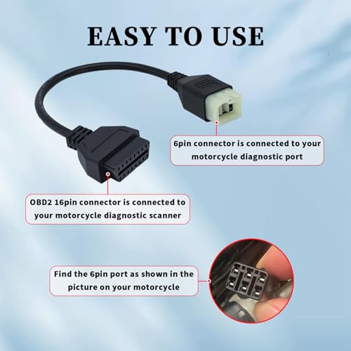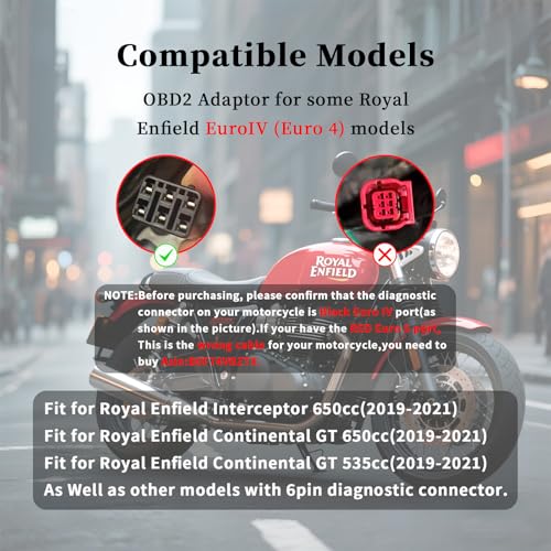 OBD2 Adapter Cable for Royal Enfield 6 Pin to 16 Pin OBD Diagnostic Connector,Fits Royal Enfield Interceptor 650,Continental GT 650/535 Motorcycle CAN Bus, Work with OBDii Scan Tools Code Reader