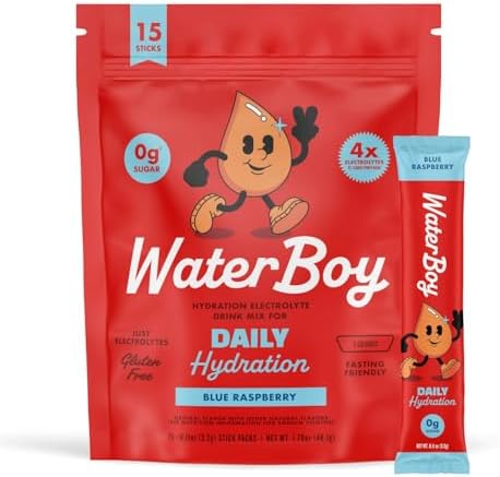 Waterboy Daily Hydration | 1,570mg Electrolyte Powder Packets | No Sugar, All Natural, Gluten Free, Zero Calories | 15 Drink Stick Mixes (Blue Raspberry)