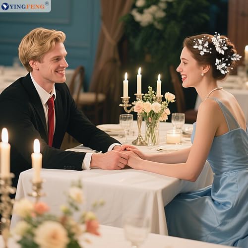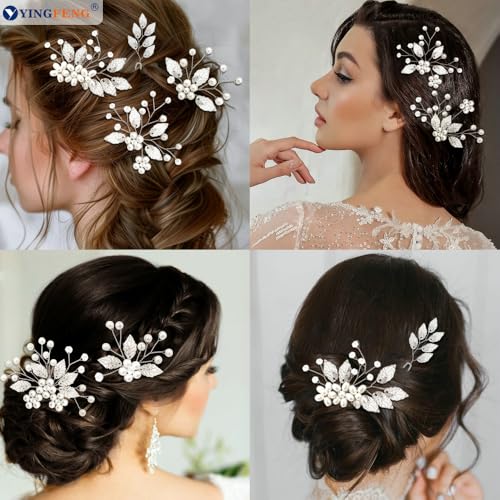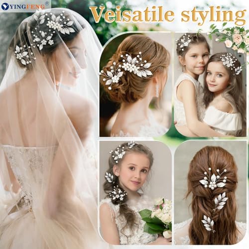 7 Pcs Silver Bridal Wedding Hair Accessories, YINGFENG Hair Pins for Women and Crystal Pearl Hair Clips,Flower Girl Hair Accessory, Hair Pins for Bride, Bridesmaids and Girls