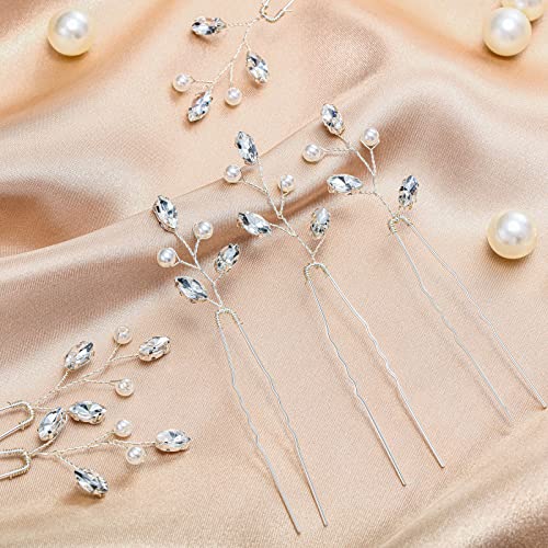 12 Pcs Crystal Bride Hair Pins Bridal Wedding Pearl Rhinestone Vintage Wedding Hair Accessory Party Pins for Women Bridesmaids(Silver)
