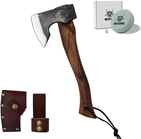 13.5 Inch Hatchet, Camping Axes and Hatchets 1065 Carbon Steel and Beech Handle, with Leather Sheath