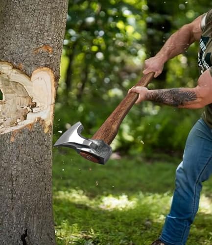 Splitting Axe, 27.5-inch Chopping Axe with Leather Sheath, Camping Hatchet 1065 High Manganese Steel and Hickory Handle