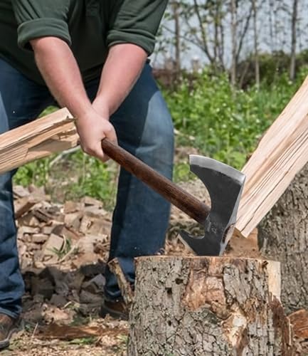 Splitting Axe, 23.6 Inch Double Bit Axe, Beech Handle with Leather Sheath, for Chopping, Splitting Wood or Axe Throwing