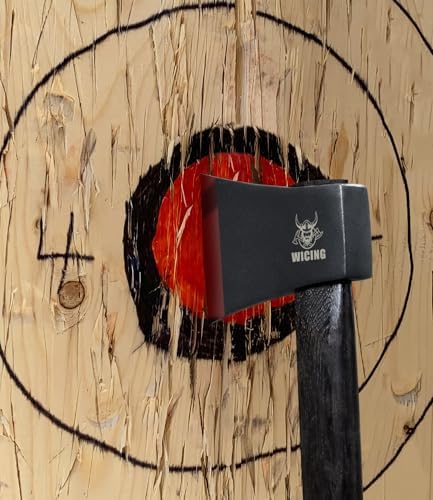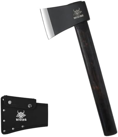 16" Throwing Axes for Axe Throwing Competitions, 1065 High Manganese Steel & Hickory Wood Handle with Nylon Sheath