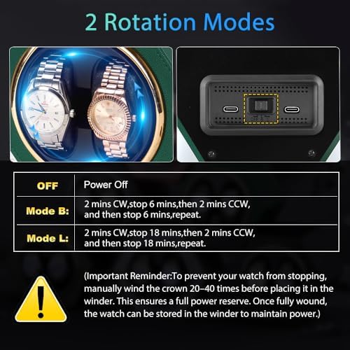 Watch Winder for Automatic Watches,Automatic Watch Winder Box,Double Watch Winder with Quiet Japanese Motor,USB Type C