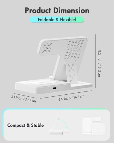 Wireless Charger Charging Station: 3 in 1 Charger Stand Multiple Devices for Apple - iPhone 17 16e 16 15 14 Pro Max 13 12 11 - Watch 10 9 8 7 6 5 4 3 2 SE and Ultra Series - Airpods 4 3 Pro, White