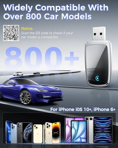 Wireless CarPlay Adapter for Apple iPhone(2025 Upgrade)- Convert Wired CarPlay to CarPlay Wireless Adapter, Stable Connection Compatible with OEM Wired CarPlay Vehicles & iOS 10+(Silver)