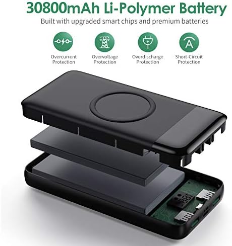 Sponsored Ad - Wireless Portable Charger 30,800mAh 15W Wireless Charging 25W PD QC4.0 Fast Charging Smart LCD Display USB-C Power Bank, 4 Output External Battery Pack Compatible with iPhone 17/16/15/1