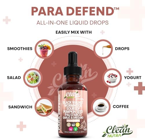 Sponsored Ad - para Defend Wormwood Black Walnut Cleanse for Humans Drops Liquid Soursop Garlic Pumpkin Seed PAU D'Arco Oil of Oregano Turmeric Berberine Neem Extract Hull Bark Tincture by Clean Nutra