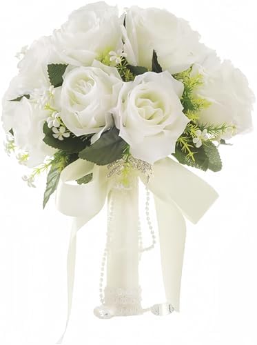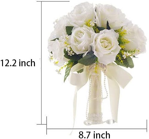 Sponsored Ad - Wowagoga 12 Inch Wedding Bouquet with Pearl Crystals Ribbons,Artificial Rose Flower for Bride Bridesmaids Artificial Fake Flowers Fake Flowers Toss Bouquet for Wedding Party Church(Whit
