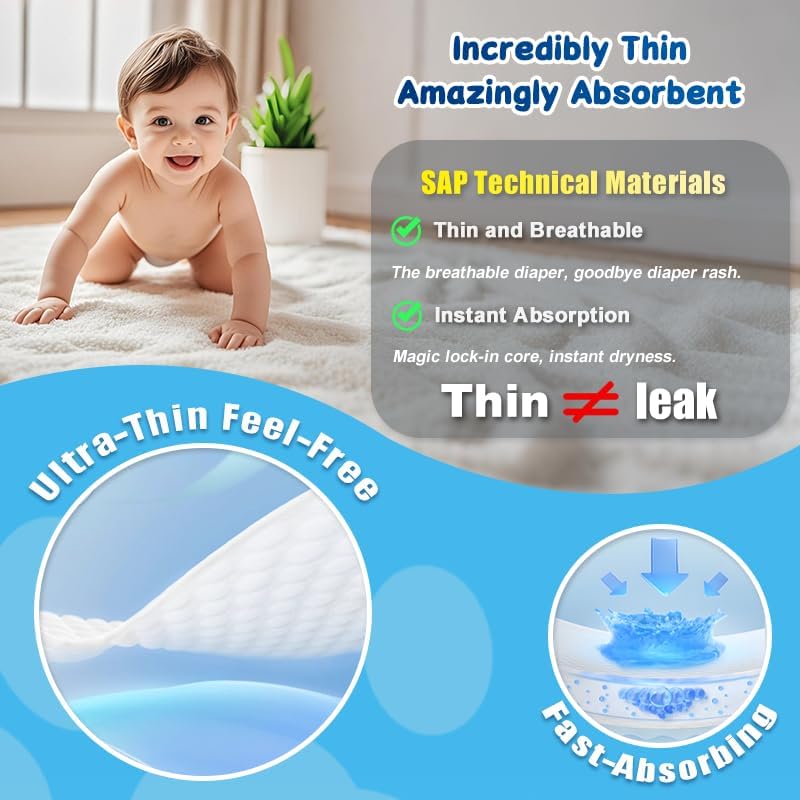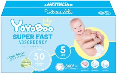 Disposable Newborn Diapers, Hypoallergenic, Superior Absorbency & Lightweight, Designed to Reduce Baby's Burden, Size 5, 50 Count