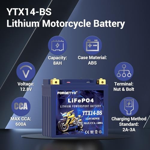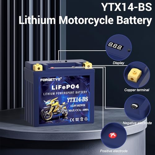 Sponsored Ad - YTX14-BS Lithium Motorcycle Battery, ATV Battery 12V 8AH 600CCA Compatible with Yamaha Scooter Snowmobile Jet Ski, Scooter, PWC & More