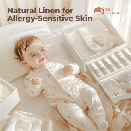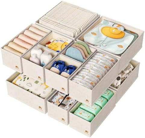 Sponsored Ad - ZenStorage Cotton Linen Drawer Organizer for Baby Clothes, 12Pack Foldable Nursery Dresser Divider, Multi-Size Set Dresser Drawer Organizer for Nursery, Bedroom and Closet, Beige