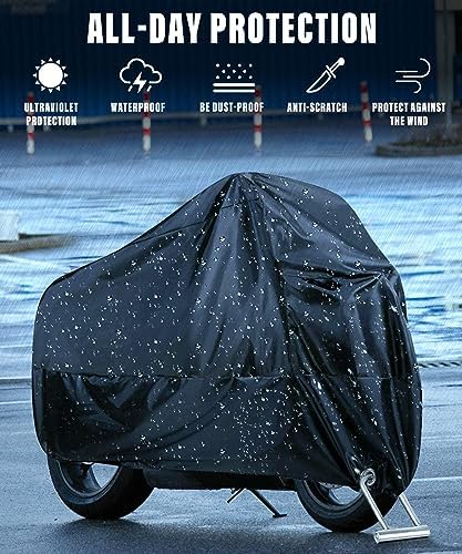 Zlirfy Motorcycle Cover,Motorcycle Accessories,Motorbike Full Cover Motorcycle Covers Waterproof Outdoor,Car Accessories Universal Motorbike Cover with Lock-Holes & Storage Bag