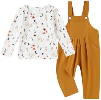 Toddler Girl Clothes 1-5T Baby Girl Outfits Fall Winter Stripe Floral Long Sleeve Top+Bib Overall Pants 2Pcs Clothing